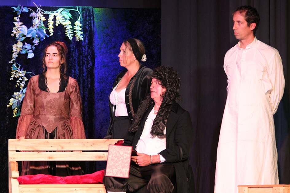 Et puis nous aurons une tendre pensée pour Muriel qui a dû renoncer, le cœur lourd, à jouer le rôle de Nérine le jour même de la première pour des raisons indépendantes de sa volonté. Une comédienne de la troupe Du rire aux Larmes, Rallou Hud, a relevé le défi de la remplacer au pied levé et l’a si bien fait que certains ont même demandé à la fin du spectacle qui avait été la remplaçante ! Un exploit ! Un grand merci à Rallou ! Nous inclurons également à l’équipe Jean-Antoine Bord, qui aurait dû faire partie de l’aventure dans le rôle de Cléante mais qui avait renoncé avec regret pour un projet de vie outre-Atlantique. C’est aussi un comédien de la troupe Du rire aux Larmes, Olivier, qui l’a remplacé (cela s’était fait en avril).